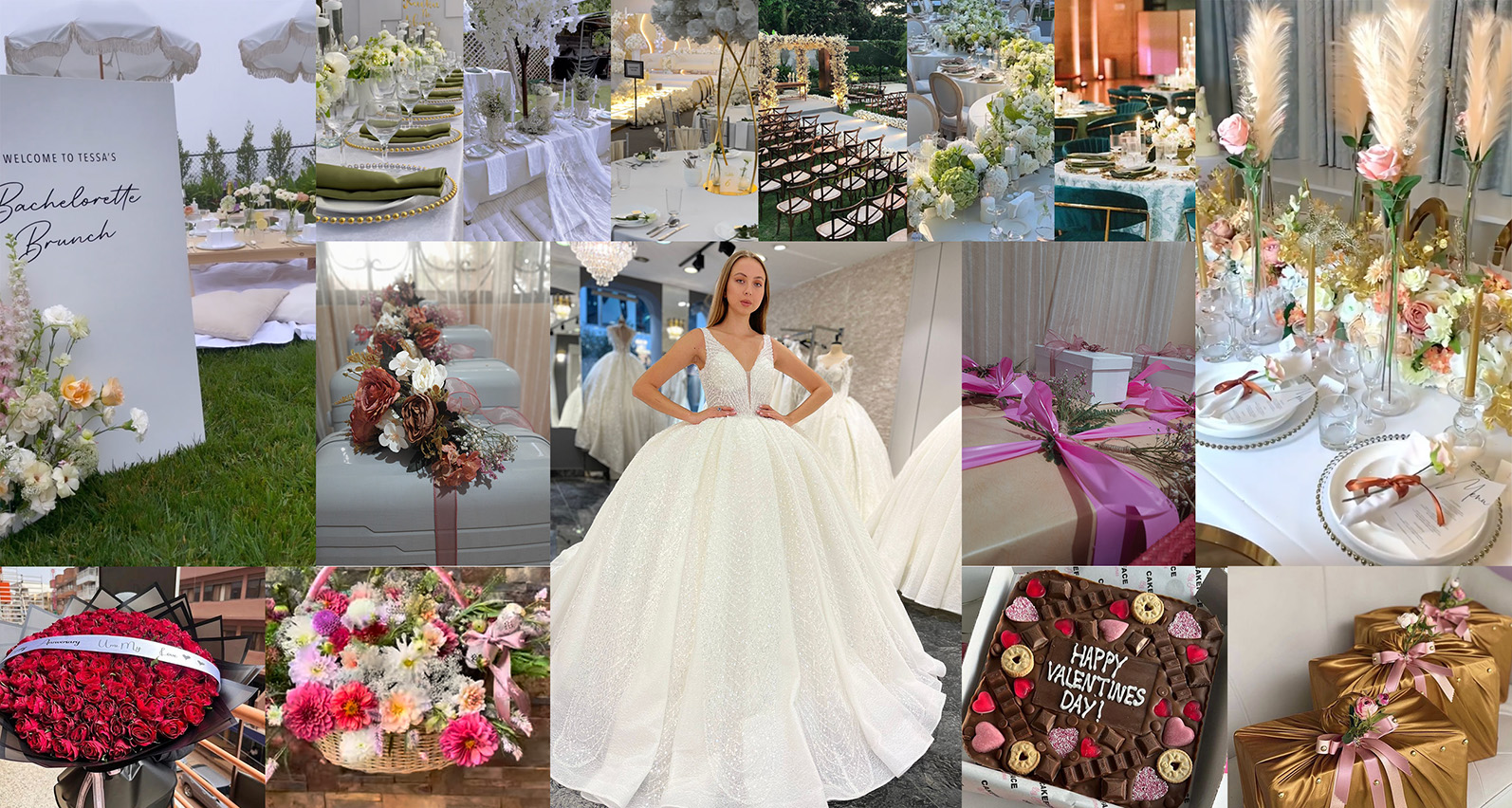 to essential equipment sourcing and venue management, we cover all your event needs. Specializing in beautiful floral arrangements and a full wedding suite, including exclusive gowns, bridal accessories, and custom stationery—we ensure every moment is perfect.