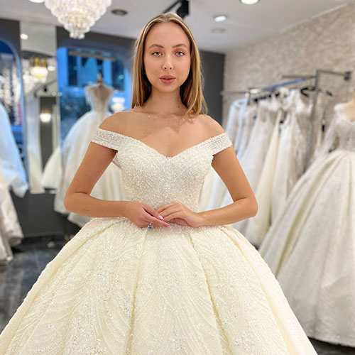 We offer stunning wedding gowns for hire or sale, including imported designs from Turkey, China, and India. Book 5 months in advance with an 80% deposit.