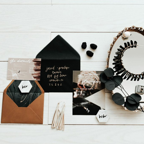 Secure your wedding stationery booking at least five months before your wedding for all essentials, including Invitation, Message, Placement, and Business cards. Please be aware that express service is available at an extra cost.